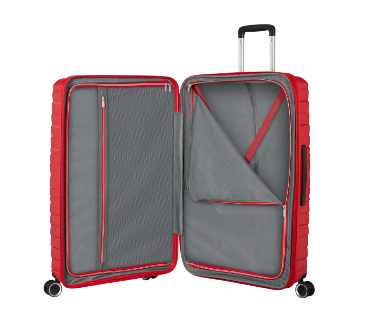 Velký kufr s možností rozšíření vhodný na delší dovolenou v krásné červené barvě