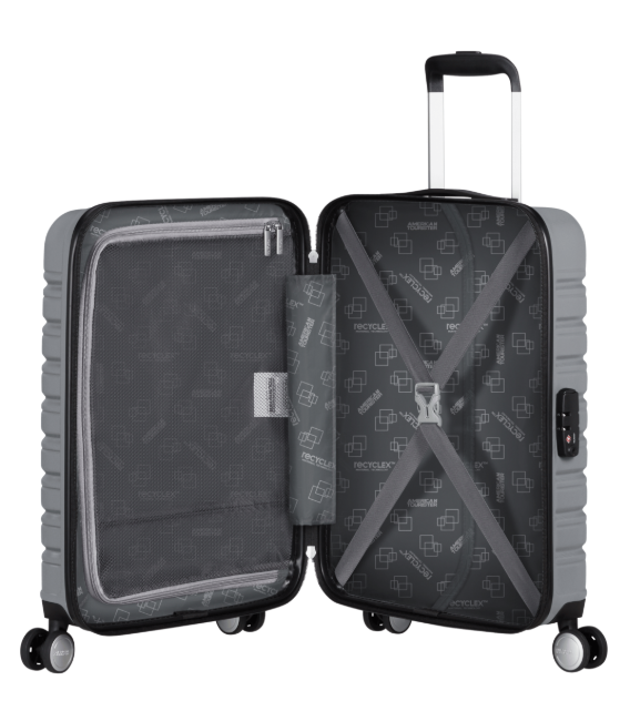 American tourister kabinový kufr Flashline spin. 55/20 TSA Sky silver stříbrný