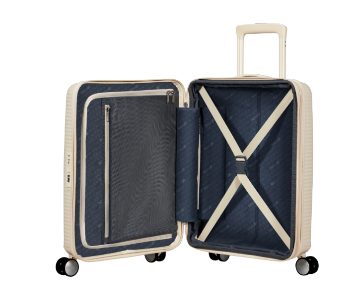 Vítěz cen Red Dot - Rozšiřitelné kufry poskytují větší prostor pro zabalení všech věcí v případě potřeby + křížové popruhy udrží všechny předměty na místě