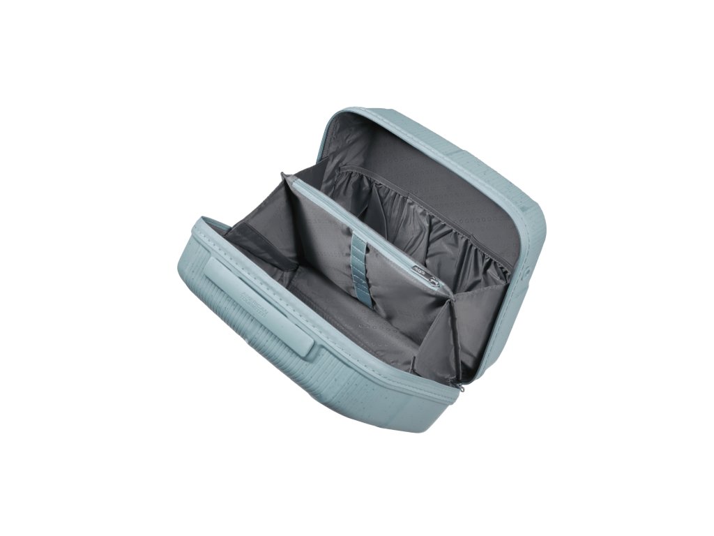 Kufřík nabízí vnitřní prostor s organizérem pro přehledné uložení hygienických a kosmetických potřeb