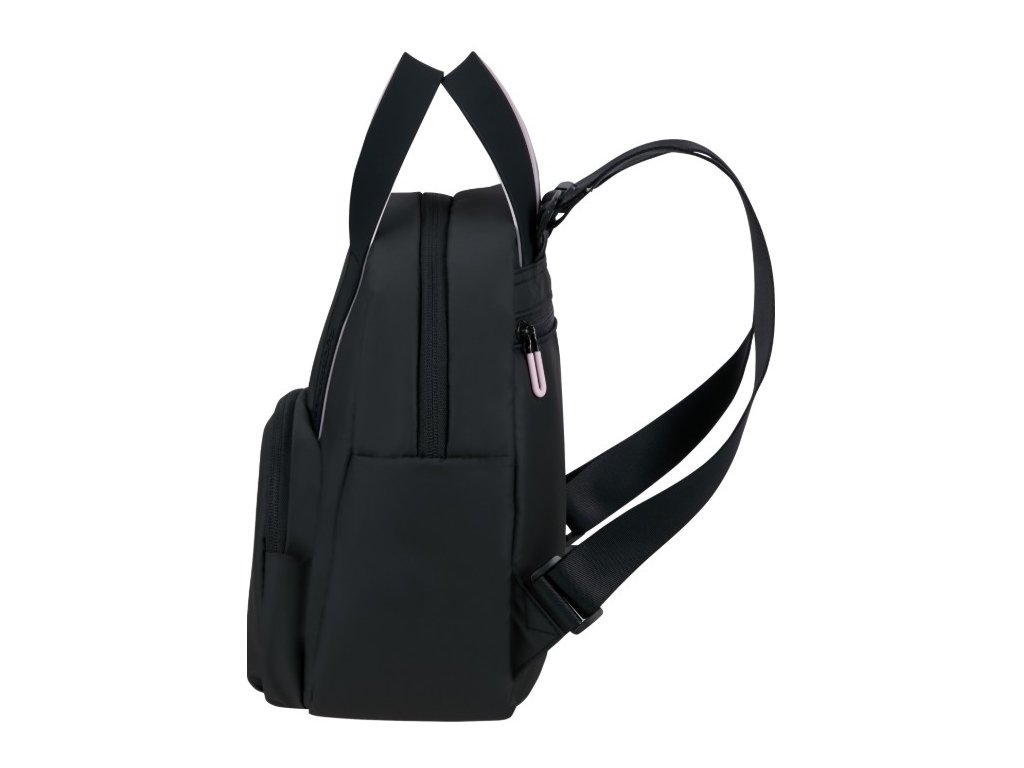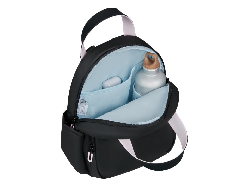 Uvnitř se nachází jedna volná kapsa na tablet, menší kapsička např. na sluchátka a síťovaná kapsička vhodná např. na láhev