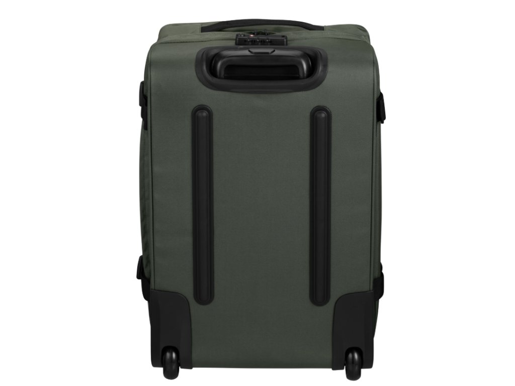 Ve výbavě tašky jsou dvě hladká kolečka a spodní držadlo proti odření