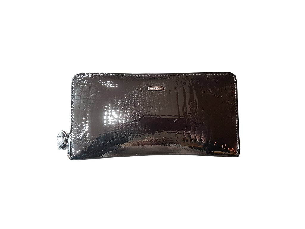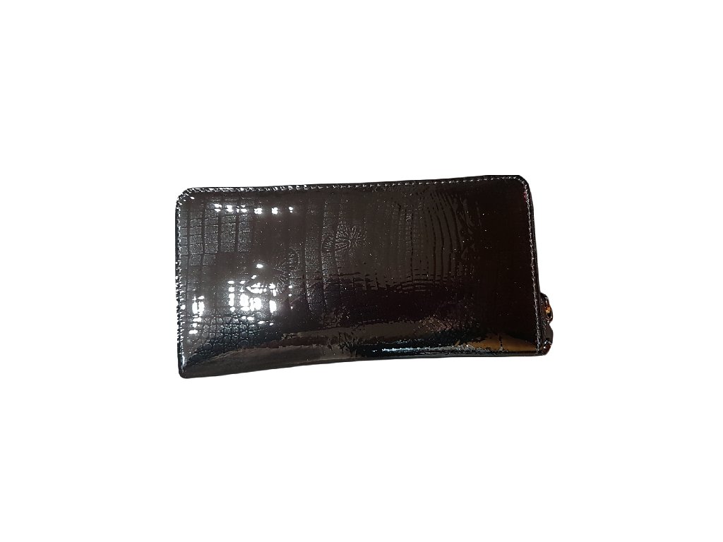 Peněženka je z lesklé kůže s krokodýlím vzorem a s motýli.