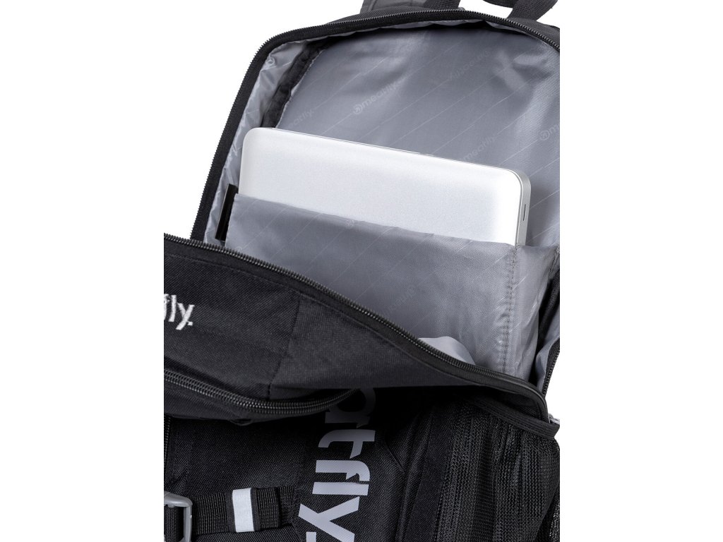 Hlavní kapsa ukrývá polstrovanou přihrádku na notebook (až 13,3″ 💻) + microfleece kapsu vhodnou třeba na brýle 😎 nebo jiné citlivé předměty.