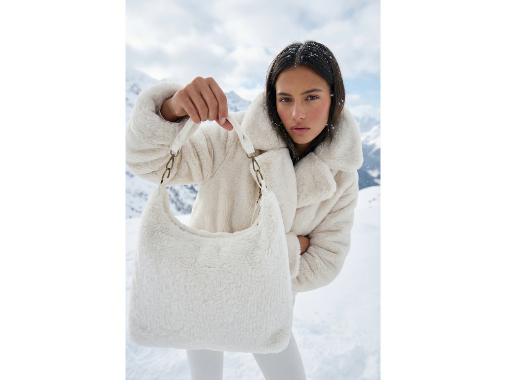 -Tato nadýchaná prostorná kabelka z umělé kožešiny v krémové barvě je ideální pro každodenní nošení.