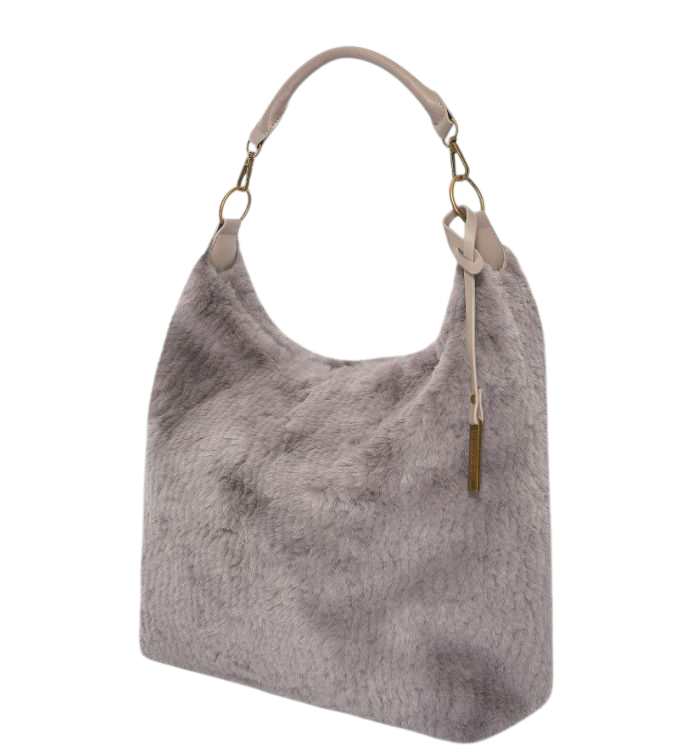 -Tato nadýchaná prostorná kabelka z umělé kožešiny v šedé barvě je ideální pro každodenní nošení.