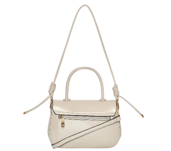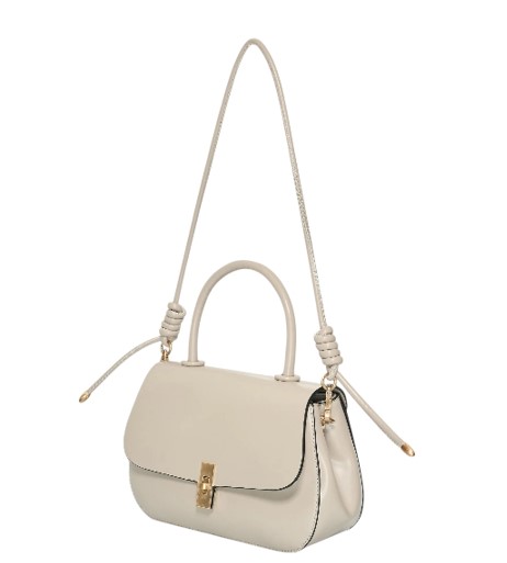 Kabelka má tmavě béžový odstín a uzavírá se klopou na otočný zámek