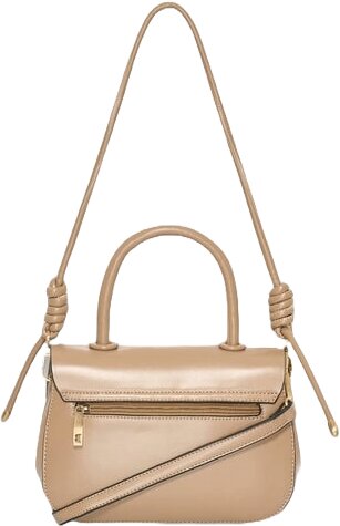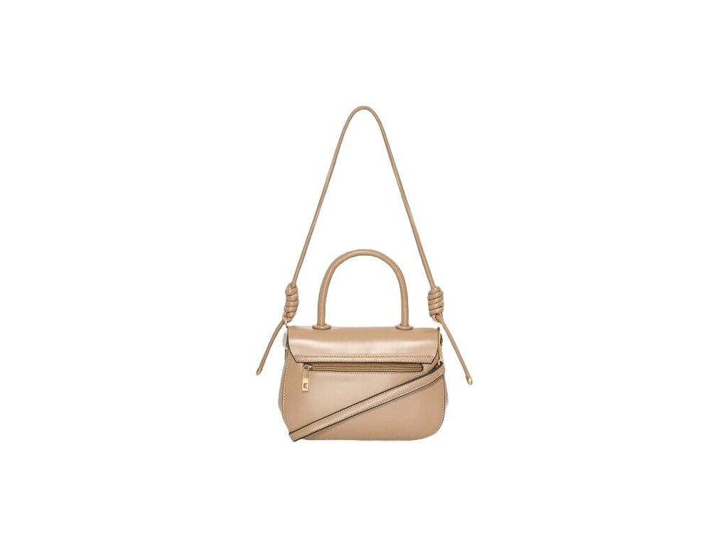Kabelka má tmavě béžový odstín a uzavírá se klopou na otočný zámek