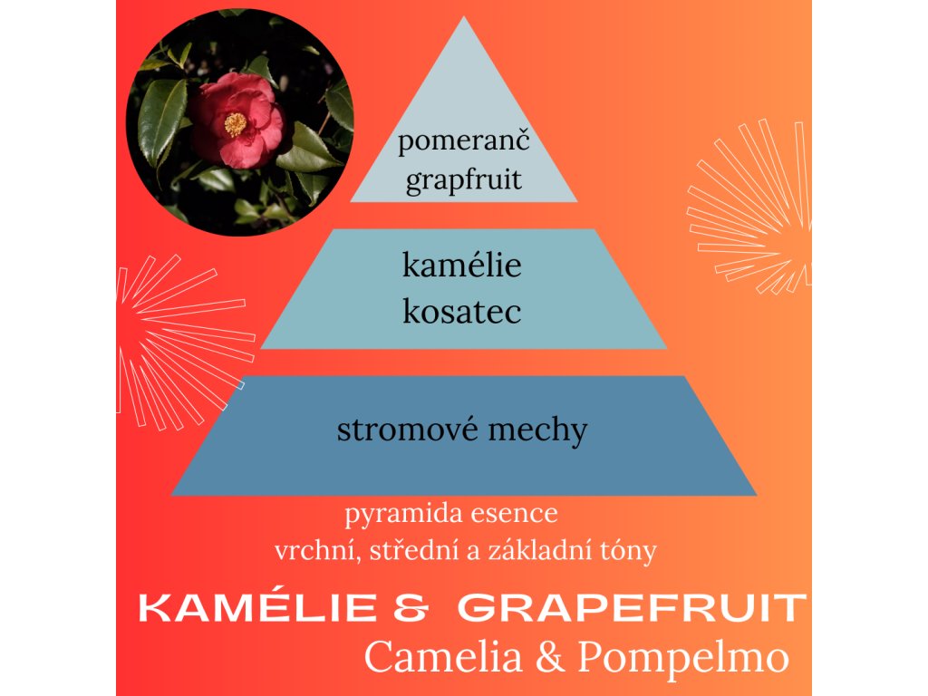 Parfém s vůní kamélie a grapefriutu je svěží, elegantní a decentně povznášející vůně s lehkou květinovo‑cítrusovou kompozicí