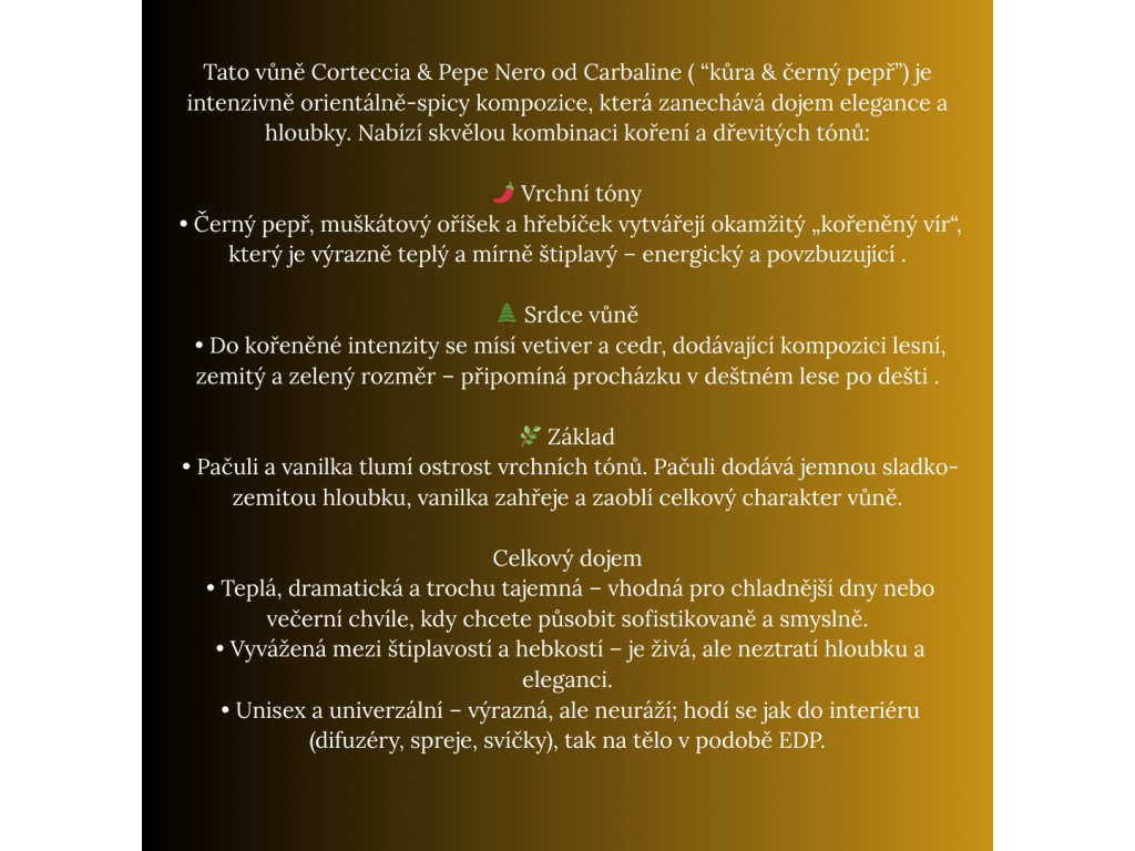Kůra a černý pepř zajimavá vůně od italské značky Carbaline