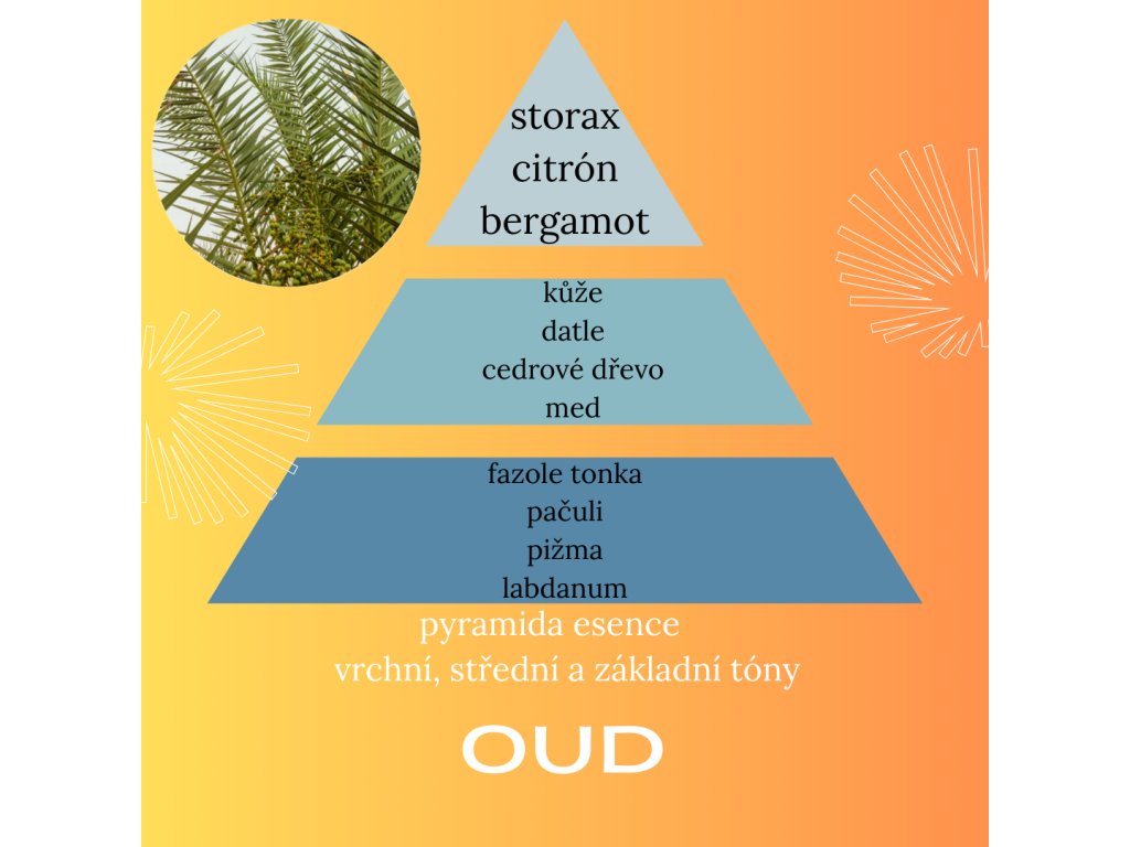 “Carbaline Oud” je komplexní orientální vůně, která evokuje teplé, mystické pouštní oázy – s bohatou kombinací sladkých i pronikavých tónů.