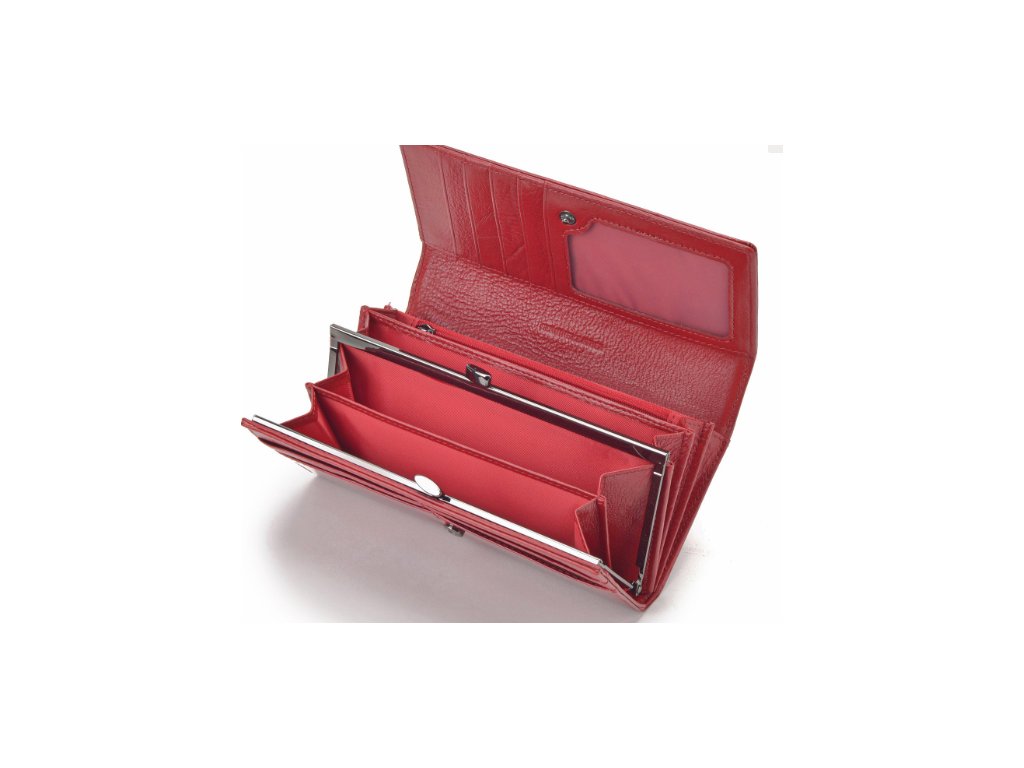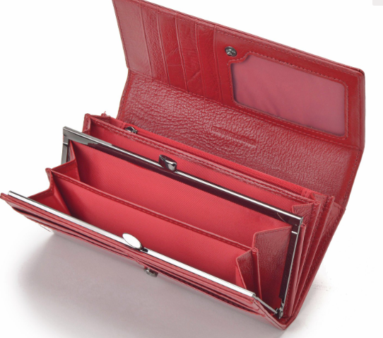 Kvalitní dámská kožená peněženka s kovovým rámem a jemným motivem peříček