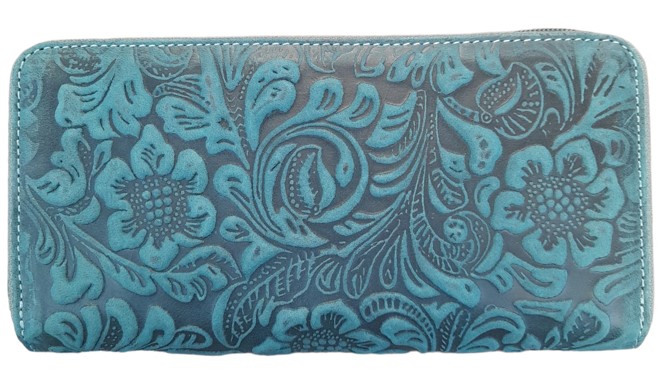 Peněženka z broušené kůže s plastickou ražbou s motivem květin
