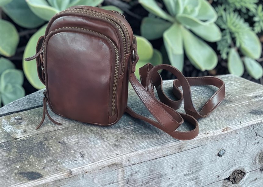 Volnočasová crossbody z hovězí kůže ve stylu vintage vhodná na mobilní telefon, peněženku a klíče