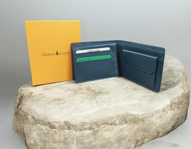 Hladká peněženka z velmi kvalitní kůže v modrém odstínu s italským šmrncem