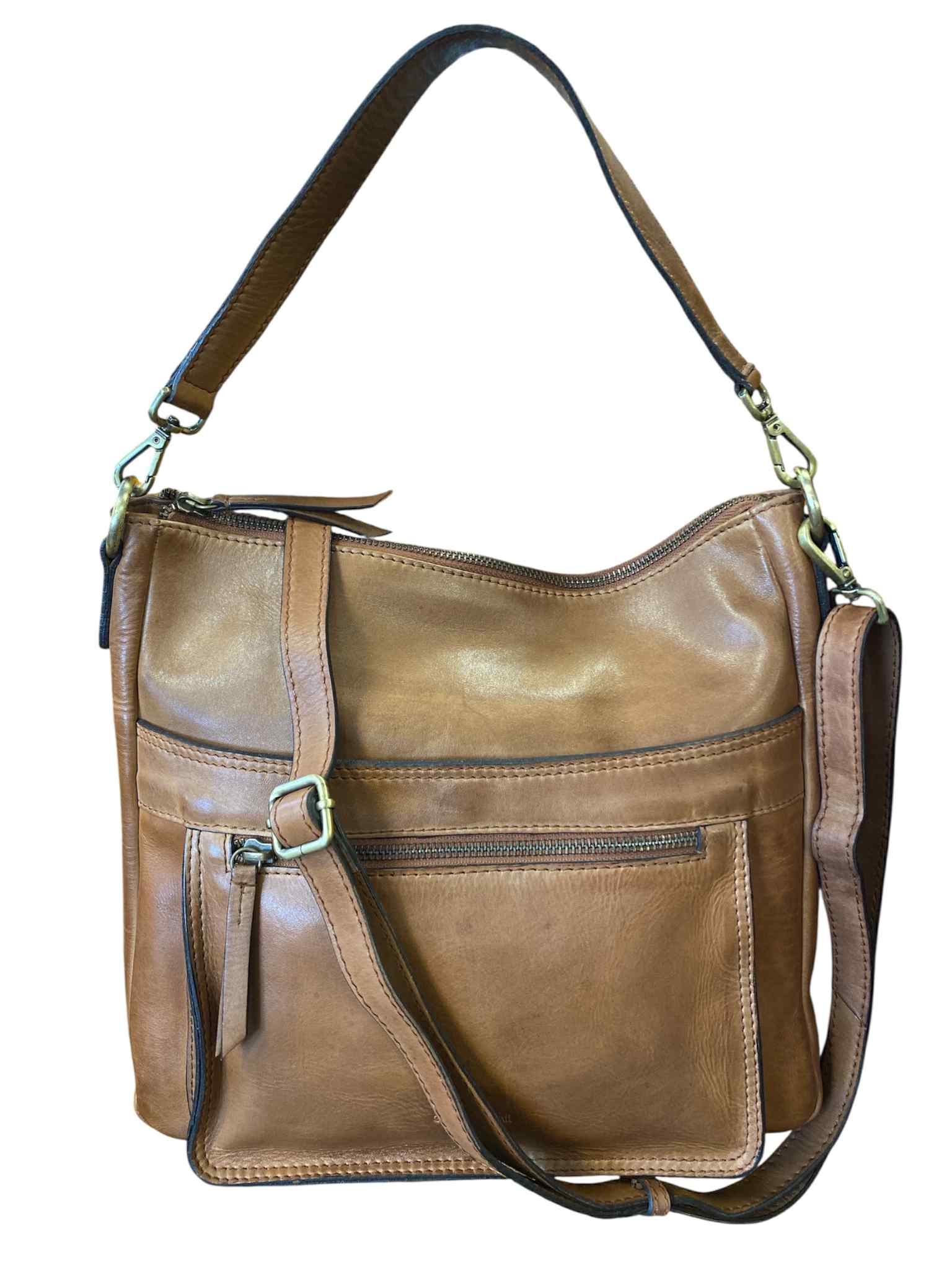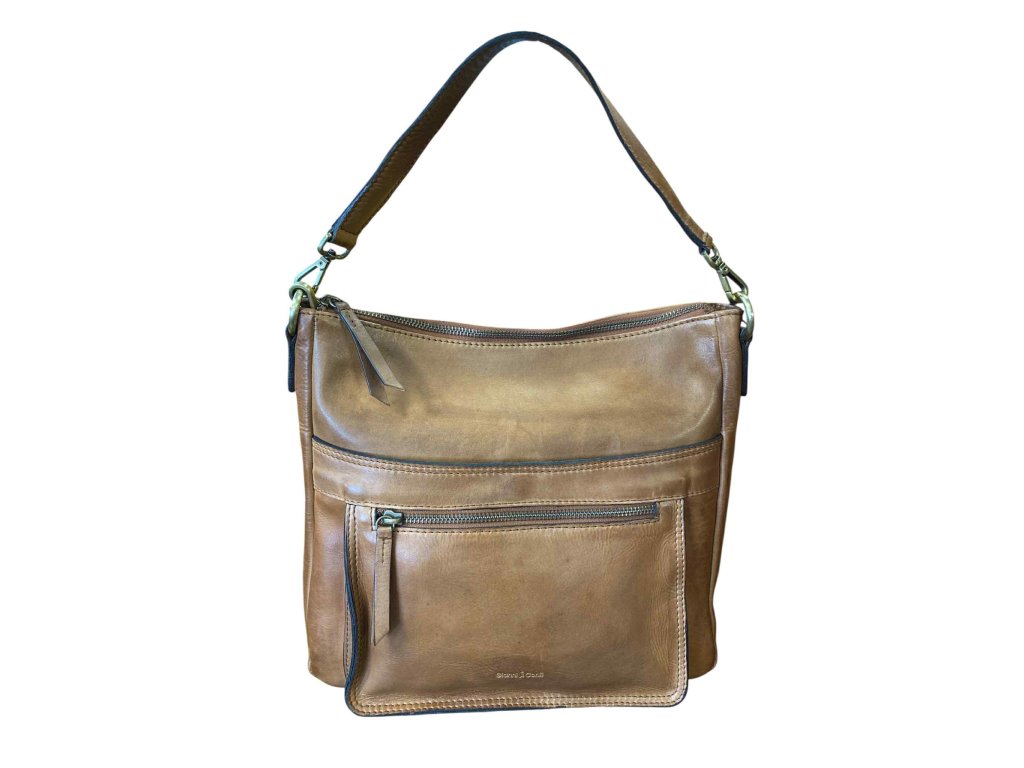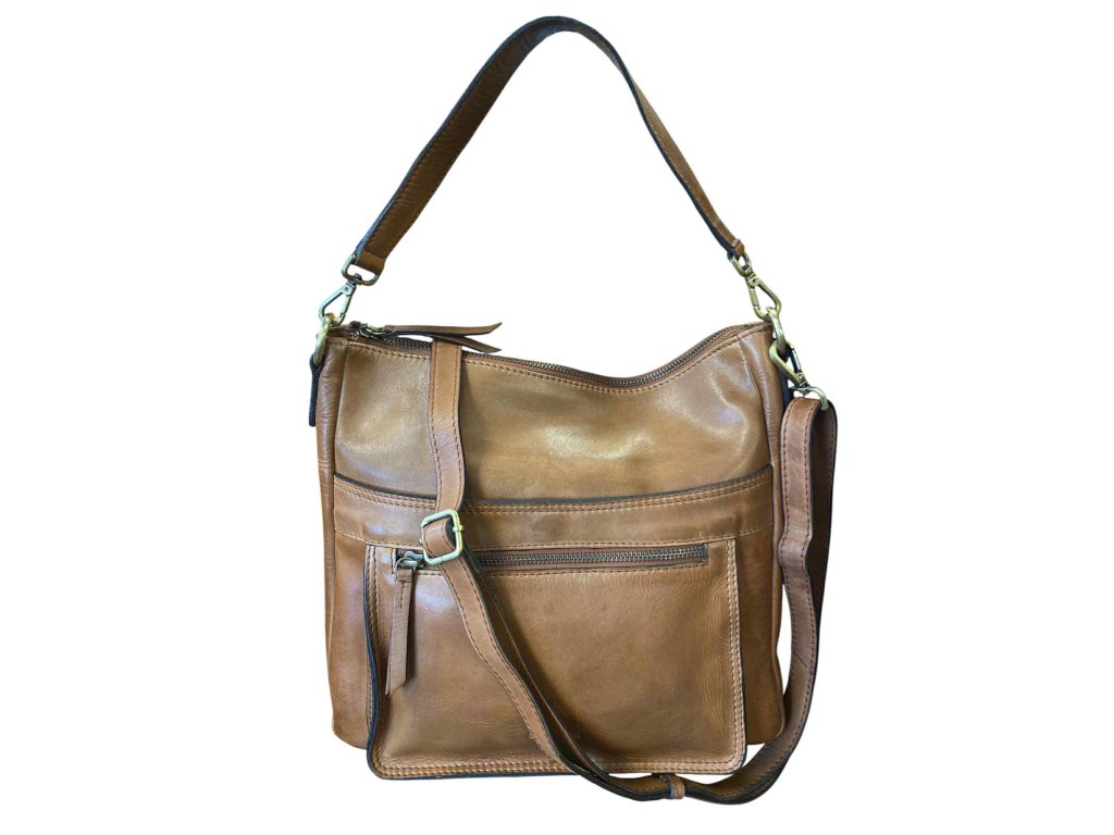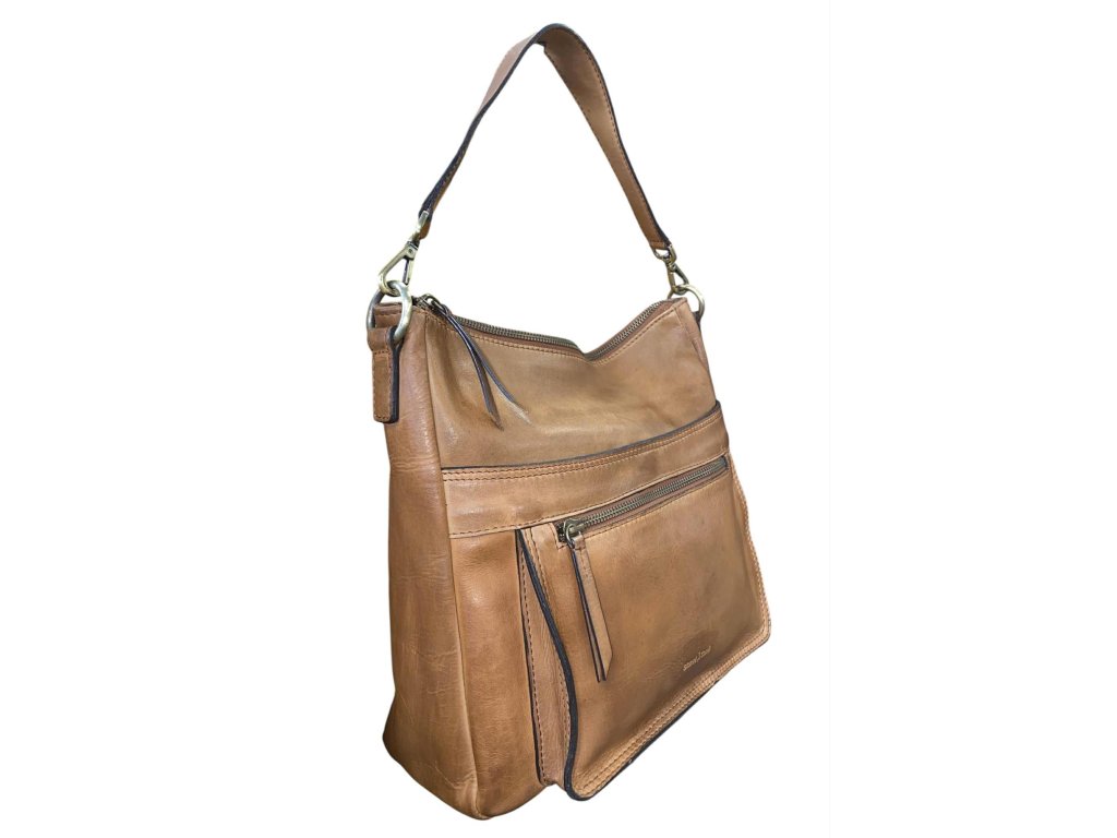 Gianni Conti stylová kožená kabelka přes rameno světle hnědá