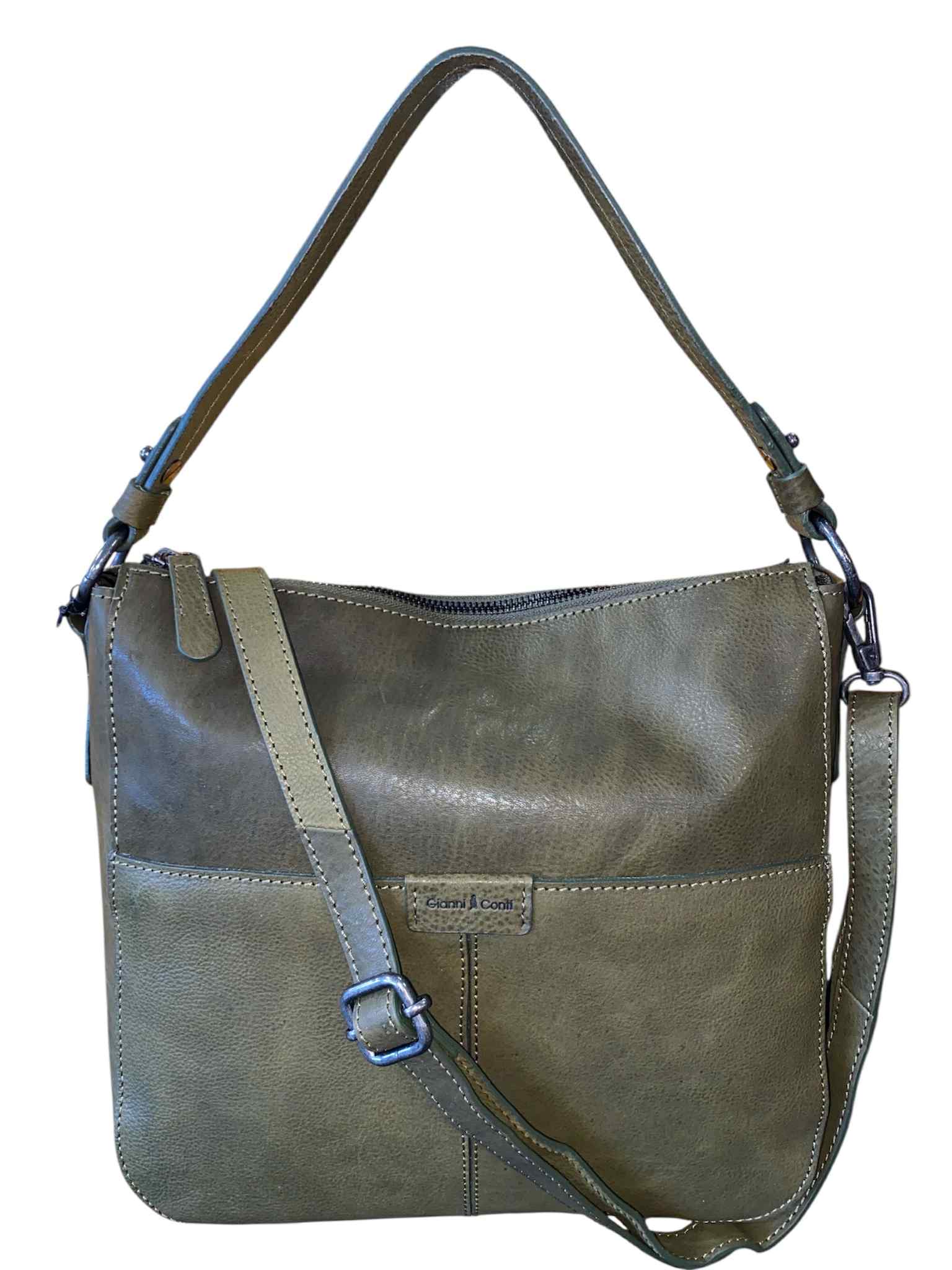 Gianni Conti větší dámská kožená kabelka přes rameno zelená