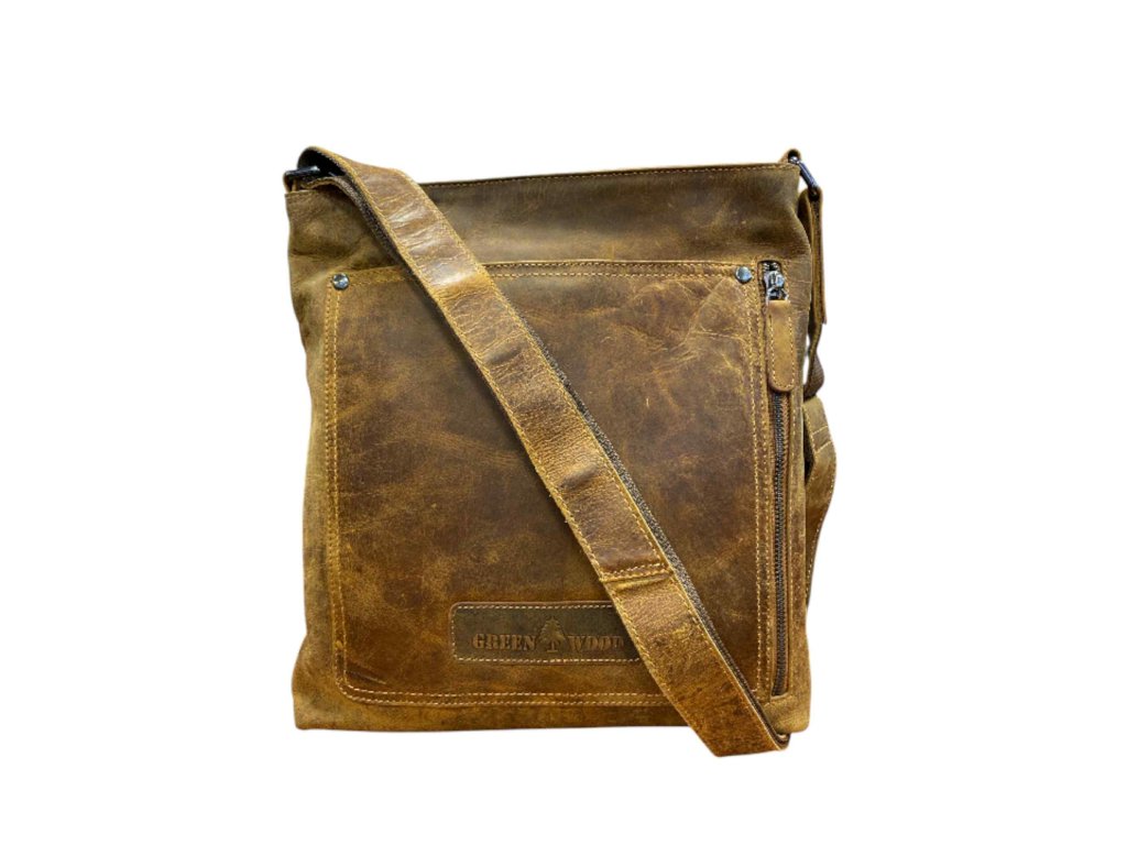 Green Wood pánská taška přes rameno z pravé kůže koňaková