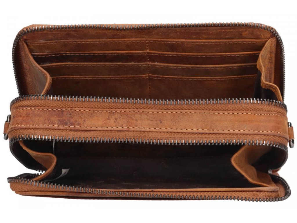 Crossbody má dva hlavní prostory, v prvním je kapsa na zip, druhý pak nabízí 8 přihrádek na karty