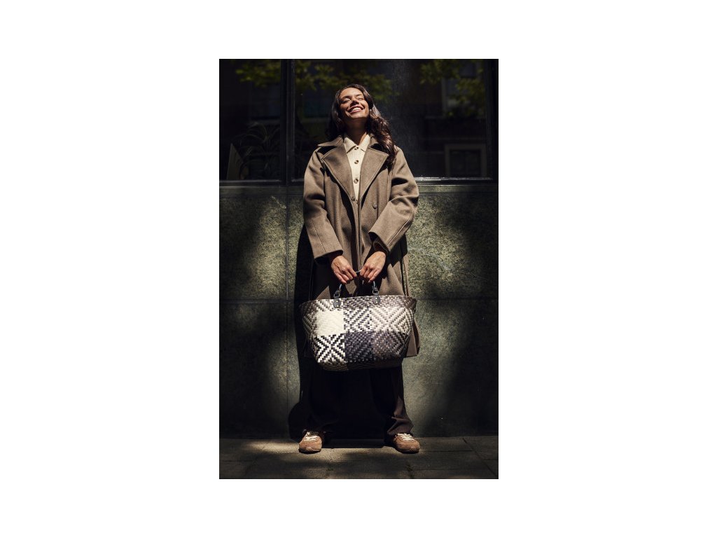 Díky kratším úchytům se taška pohodlně nosí v ruce a působí kompaktně, přitom nabízí dostatek prostoru pro všechny nezbytnosti vašeho dne. Ručně pletená struktura z recyklovaného plastu jí dodává nejen jedinečný vzhled, ale i dlouhou životnost a ohleduplnost k naší planetě .