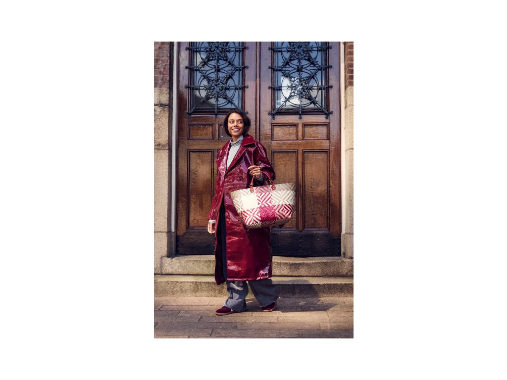 Díky kratším úchytům se taška pohodlně nosí v ruce a působí kompaktně, přitom nabízí dostatek prostoru pro všechny nezbytnosti vašeho dne. Ručně pletená struktura z recyklovaného plastu jí dodává nejen jedinečný vzhled, ale i dlouhou životnost a ohleduplnost k naší planetě .