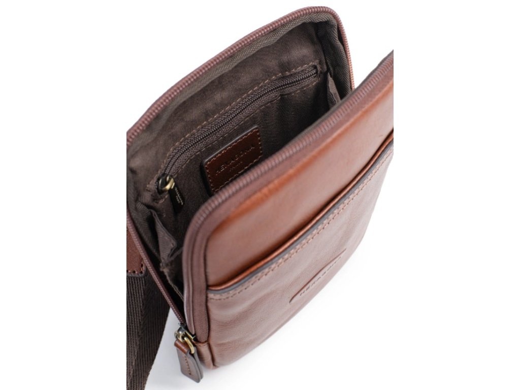 Taška má jednu hlavní kapsu uzavíratelnou na zip, uvnitř je jedna volná přihrádka a jedna zipová kapsička