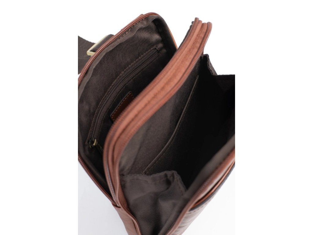 Taška má dvě hlavní kapsy uzavíratelné na zip, uvnitř je jedna volná přihrádka a jedna zipová kapsička