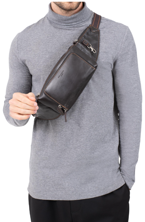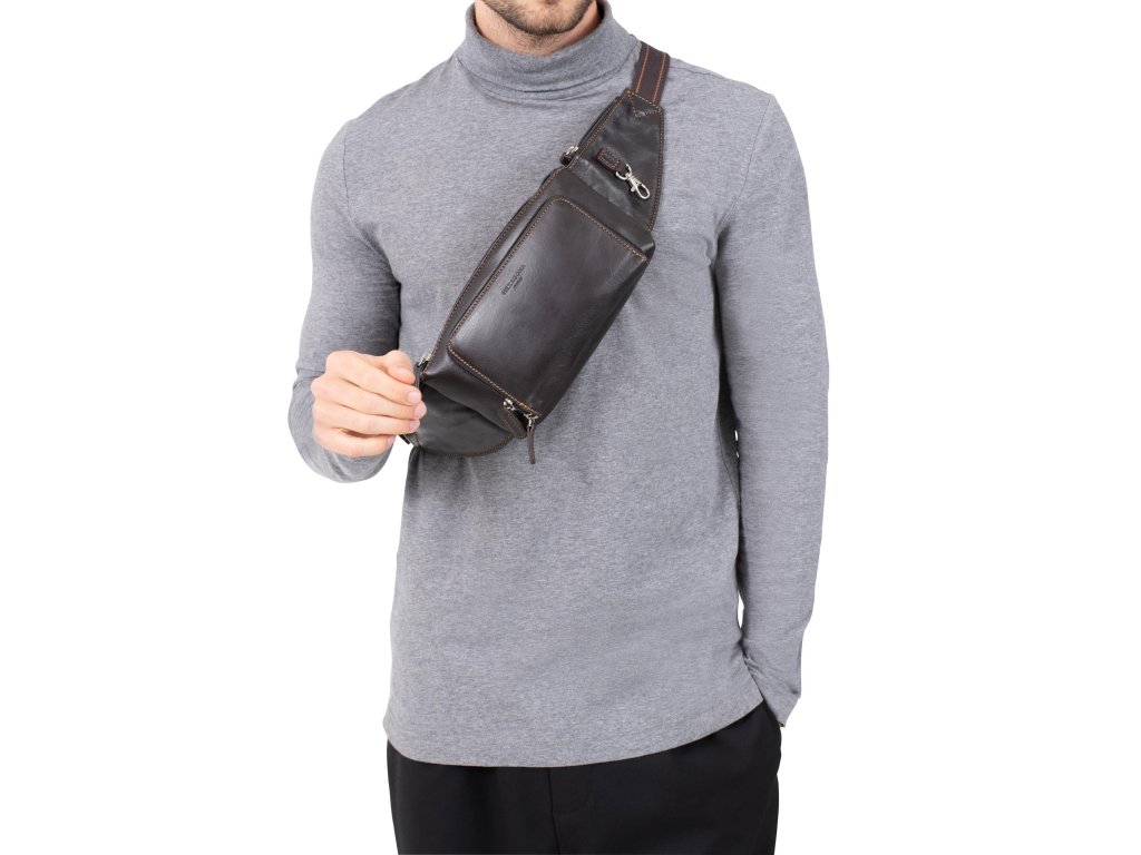 Hexagona pánská kožená ledvinka tmavě hnědá