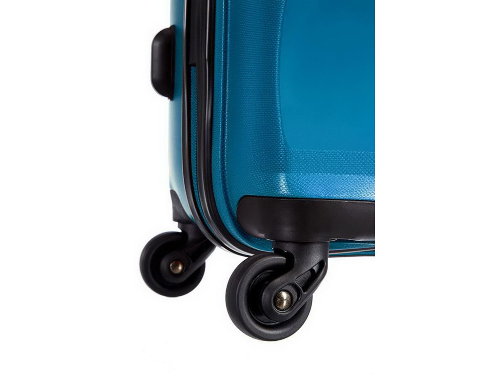 Polypropylenový materiál zaručuje, že kufr bude lehký a pevný.