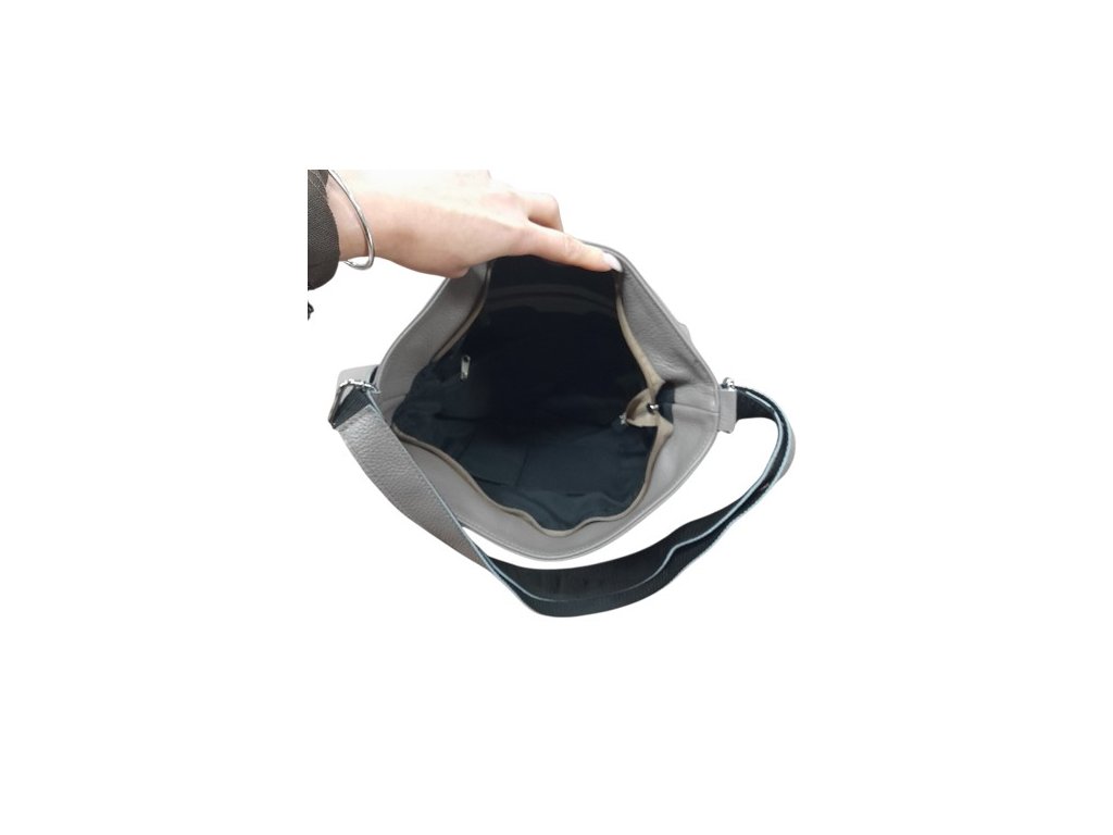 Prostorná kožená kabelka v šedo hnědém odstínu