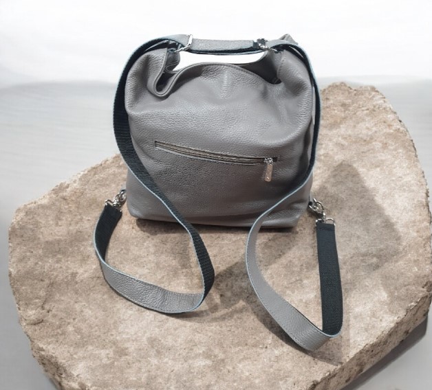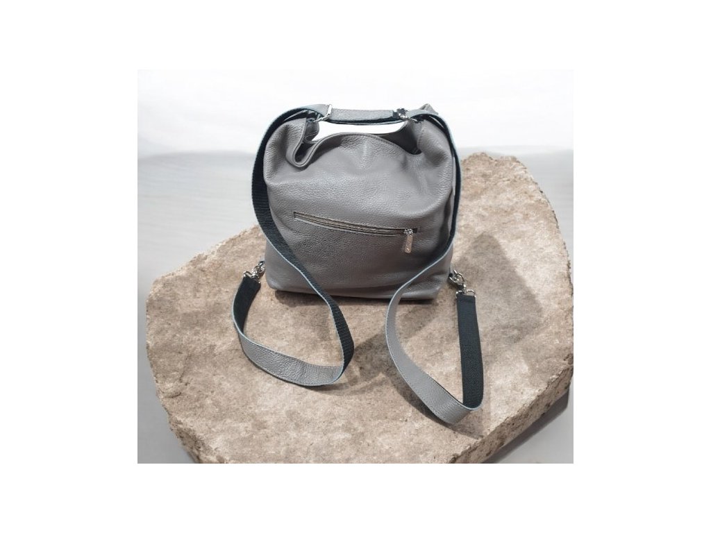 Karen kožená kabelka-batoh šedá