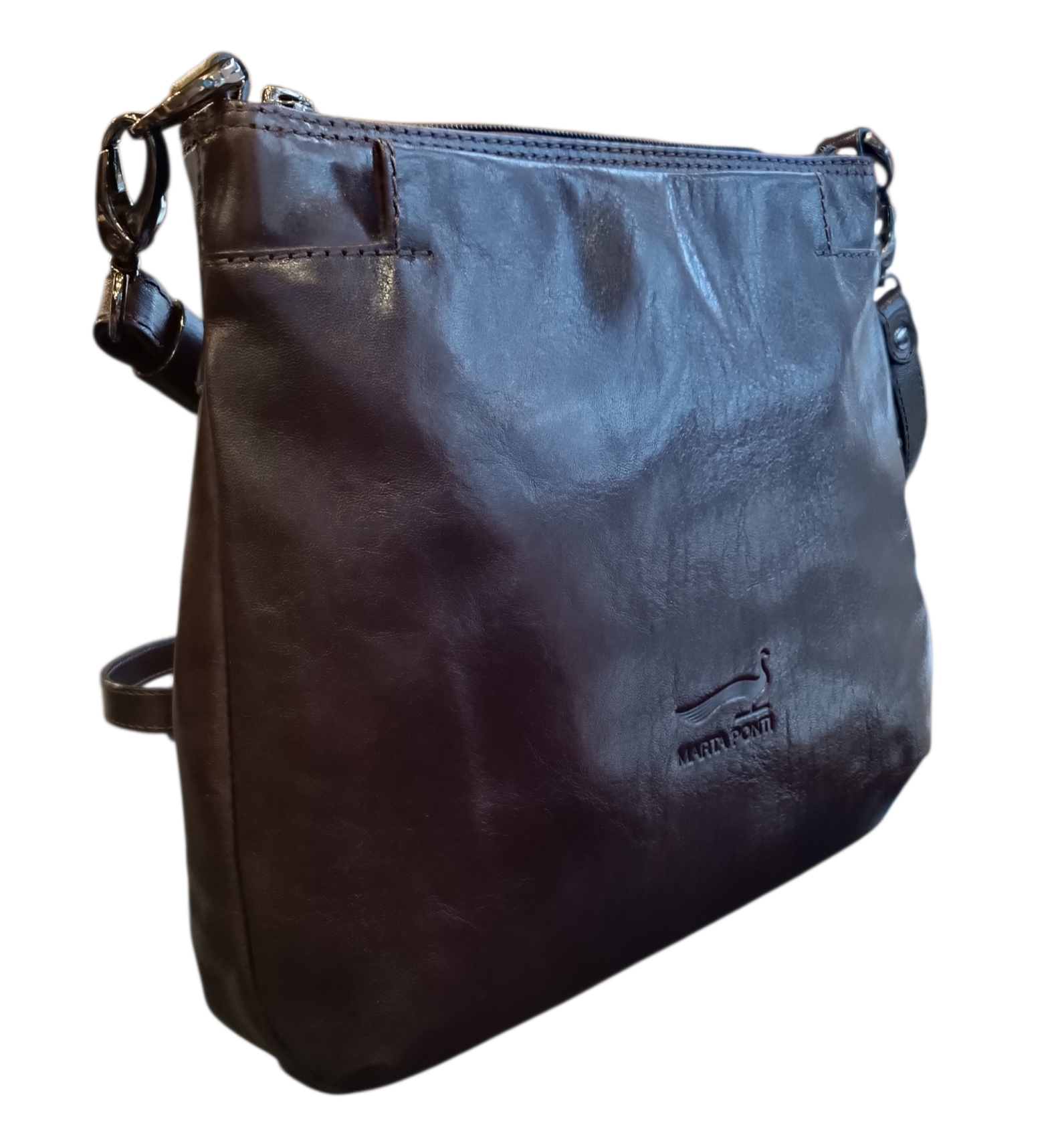 Marta Ponti dámská kožená crossbody kabelka hnědá