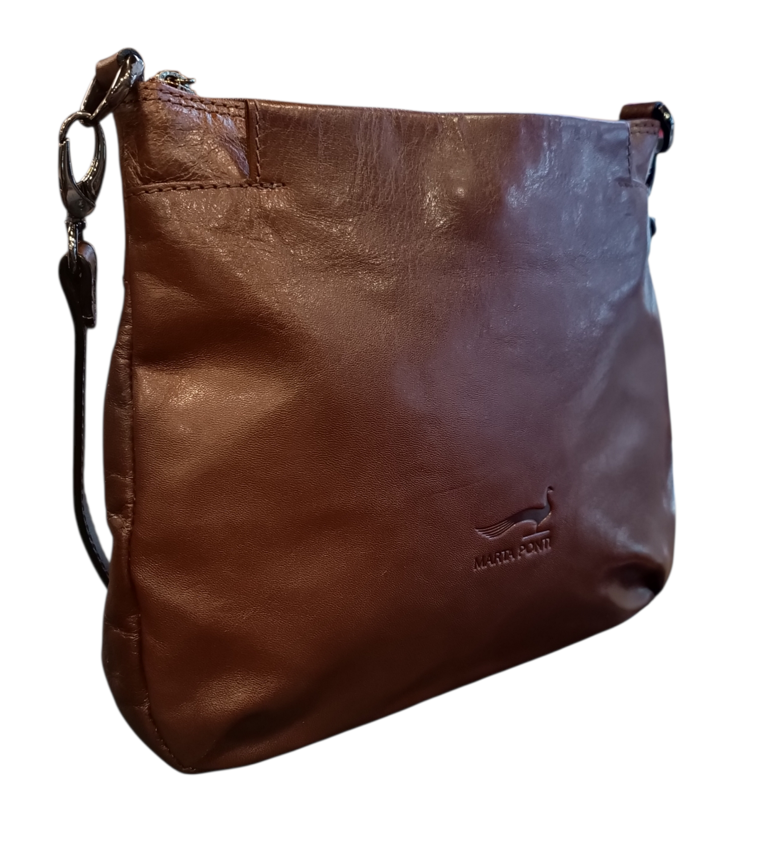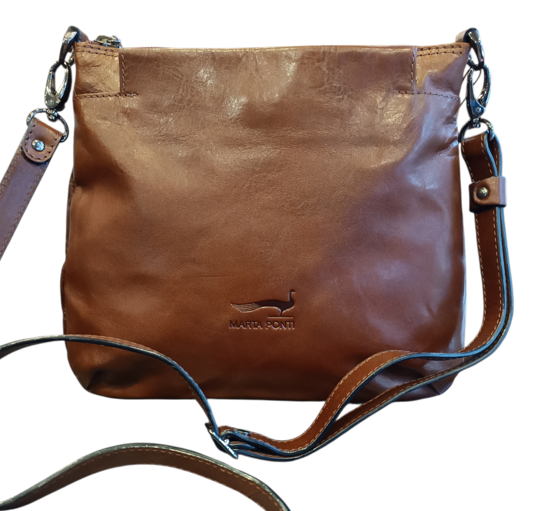 Marta Ponti dámská kožená crossbody kabelka koňaková