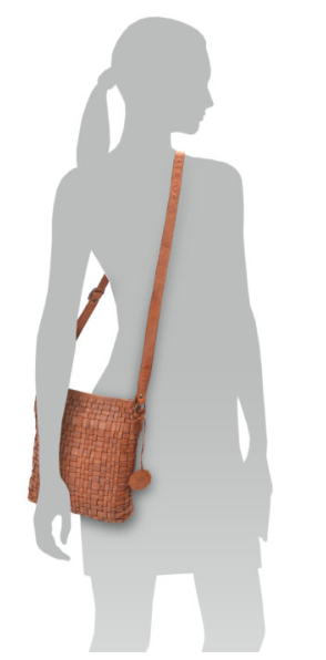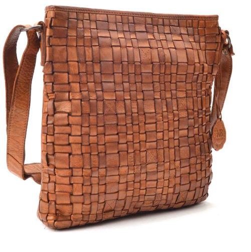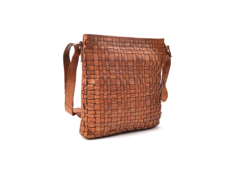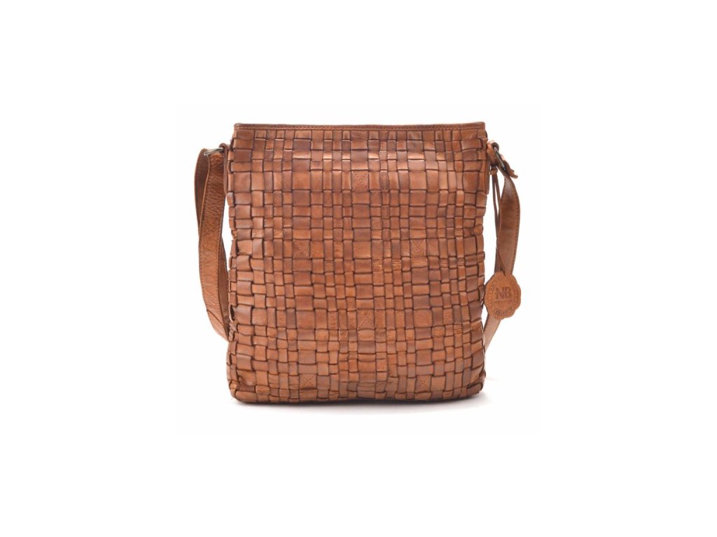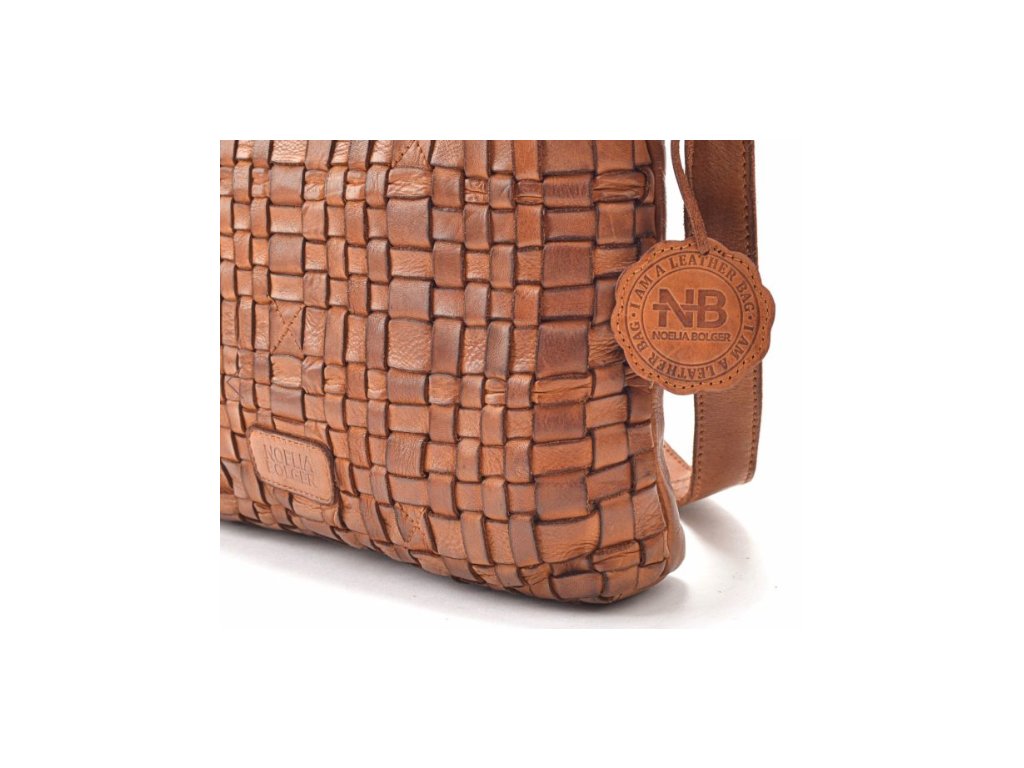 NOELIA BOLGER proplétaná menší kožená dámská kabelka koňaková