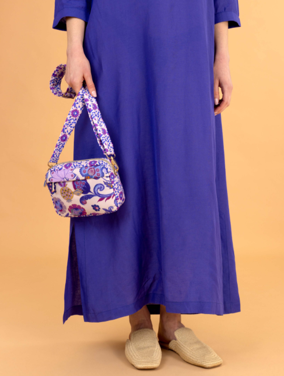 Krásná crossbody kabelka s květinovým potiskem safírového chintzu