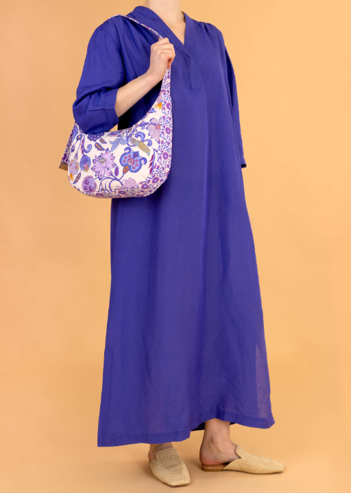 Krásná,prostorná kabelka s květinovým potiskem safírového chintzu