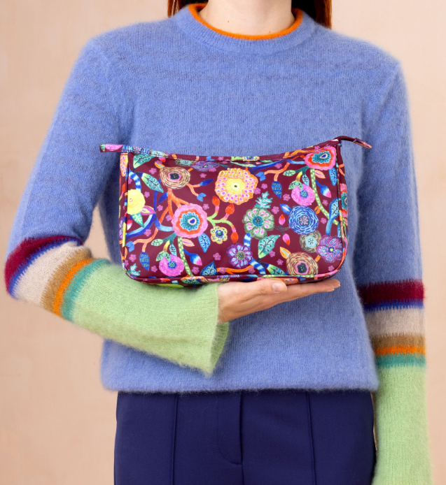 Oilily kosmetická taška Colle vínová s barevnými květy