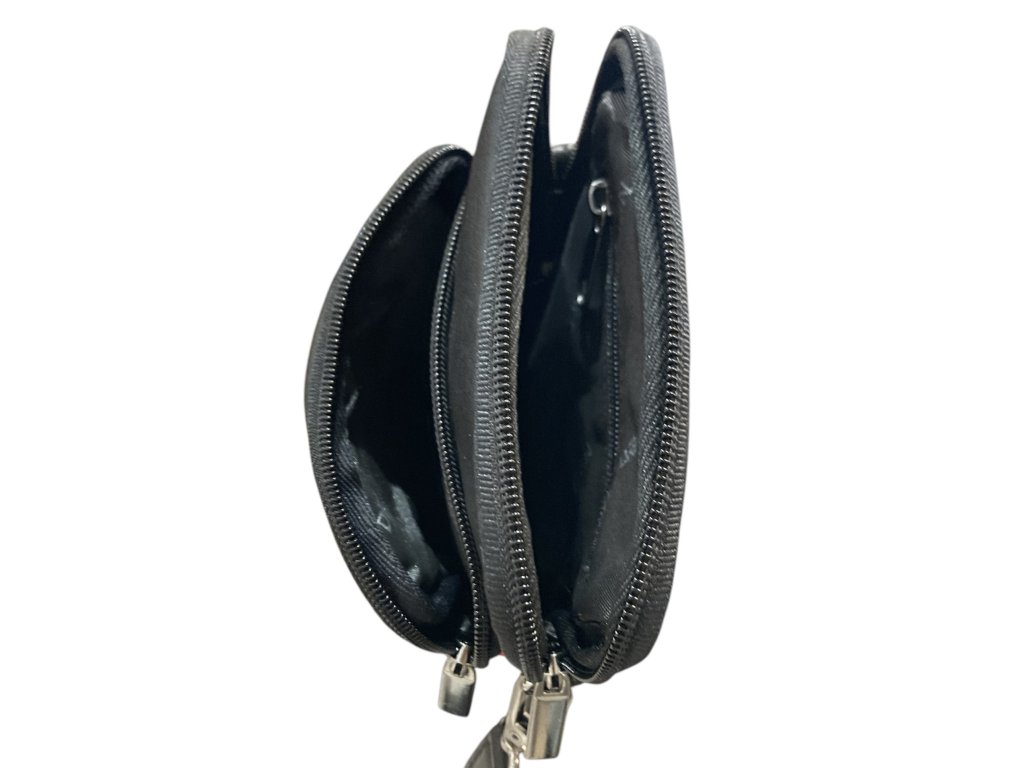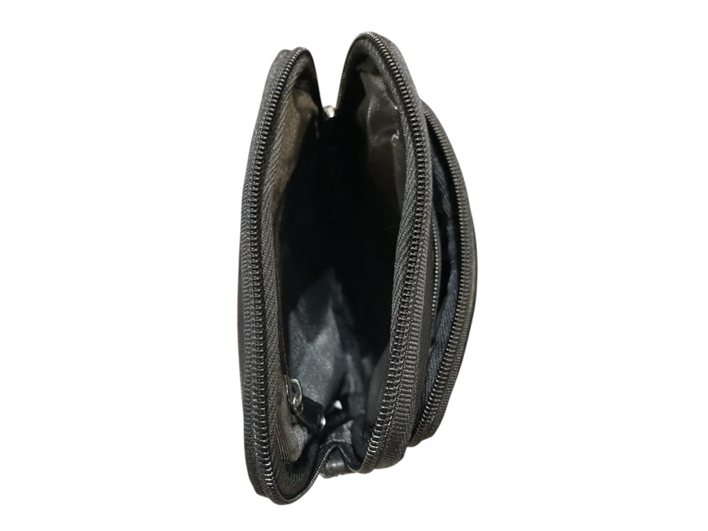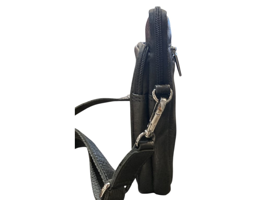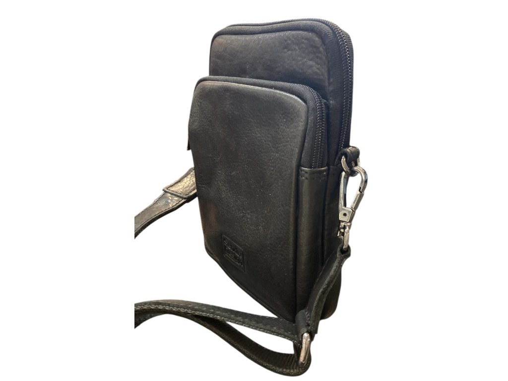 Dlouhý popruh je vyroben z kůže, doplněný kovovými sponami a je délkově nastavitelný. Tašku tak můžete nosit na rameni nebo pohodlně jako crossbody.