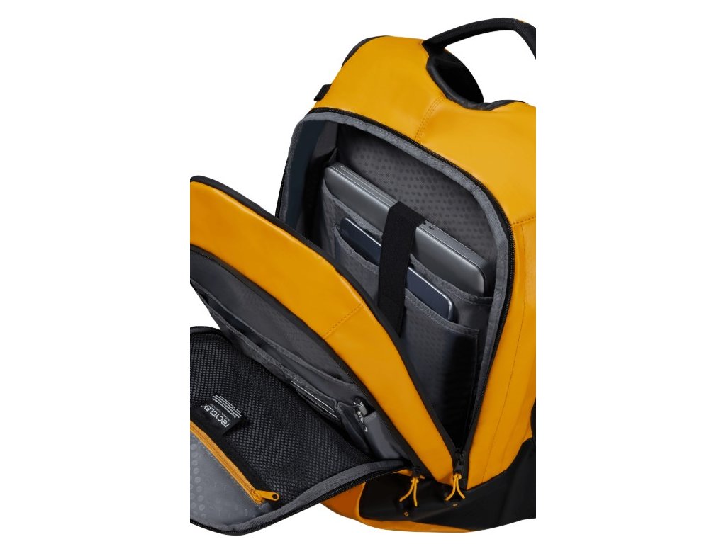 Hlavní úložný prostor je uzavíratelný na zip a je vhodný pro notebook 14" a tablet 10.5"