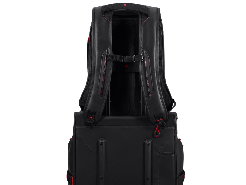 Batoh má nastavitelné ramenními popruhy a horní držadlo pro snadné uchopení
