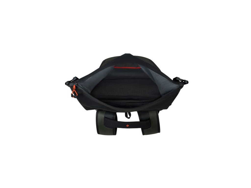Hlavní úložný prostor je rolovacího typu a je uzavíratelný na zip