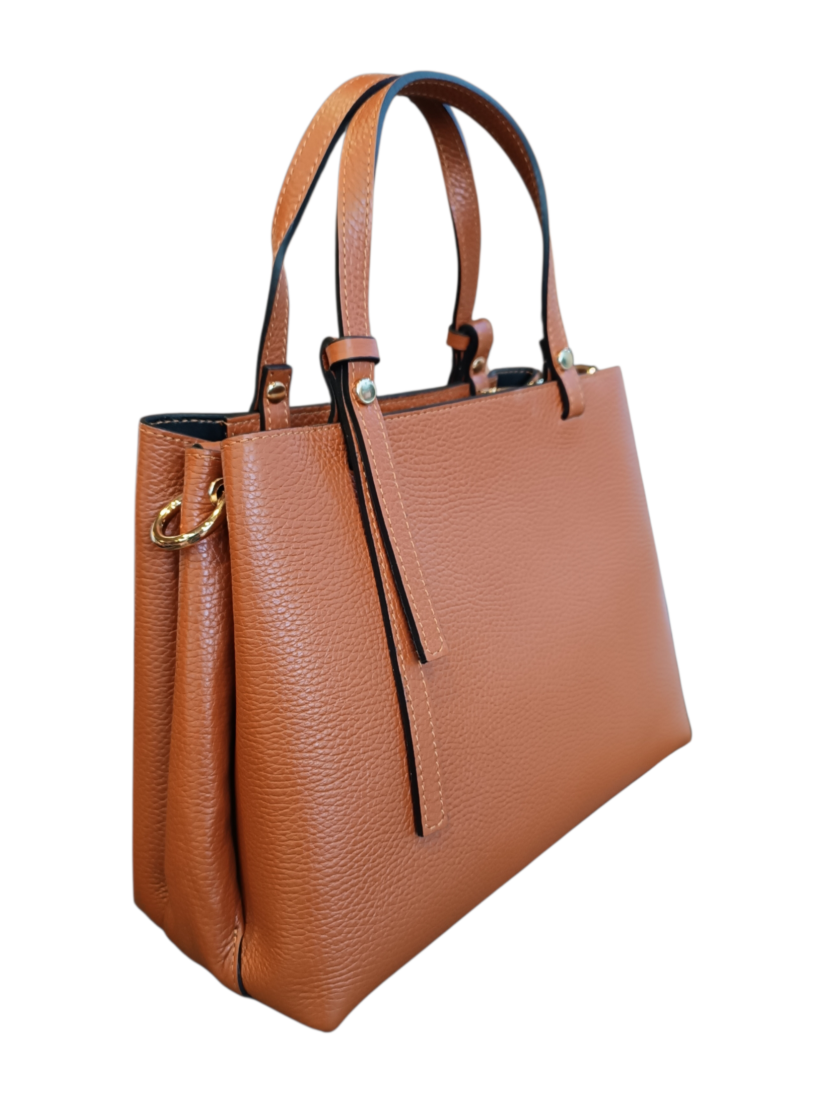 Elegantní kožená kabelka do ruky i přes rameno se zlatým kováním