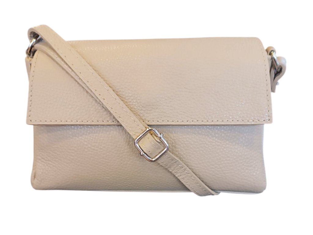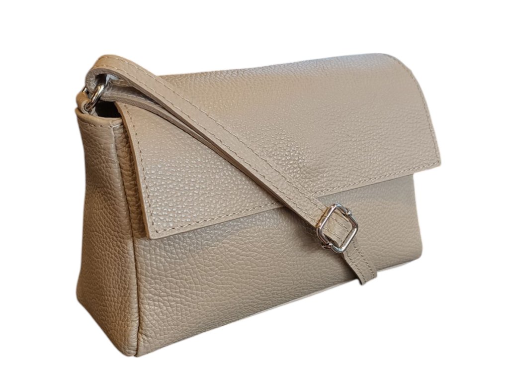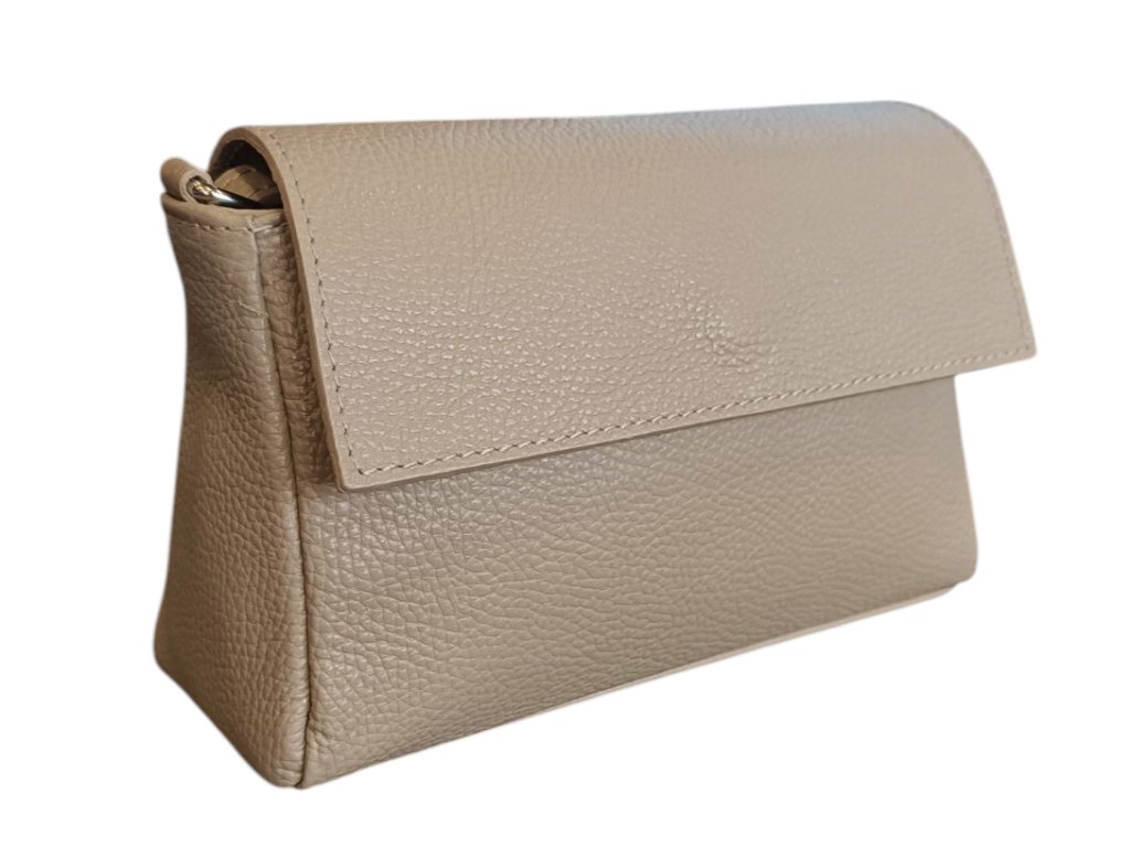 Vera Pelle kožená dámská crossbody s klopou tmavě béžová