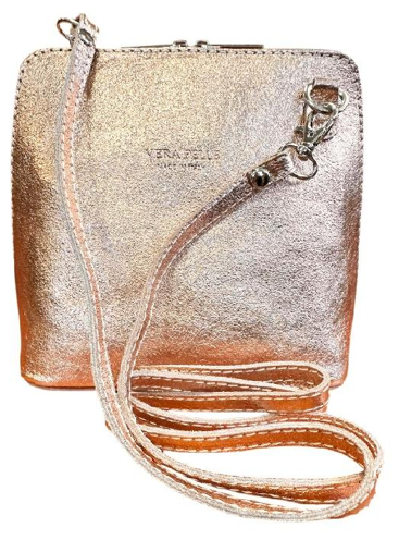 Vera Pelle kožená malá crossbody třpytivá růžová