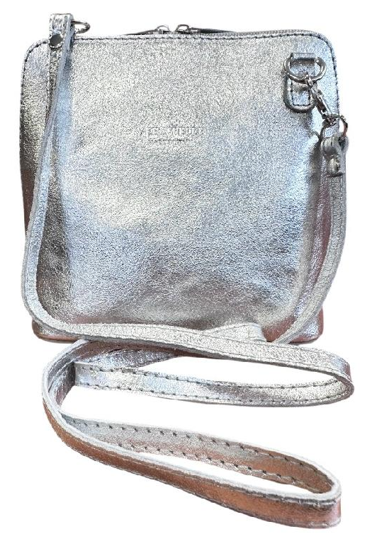 Vera Pelle kožená malá crossbody třpytivá stříbrná