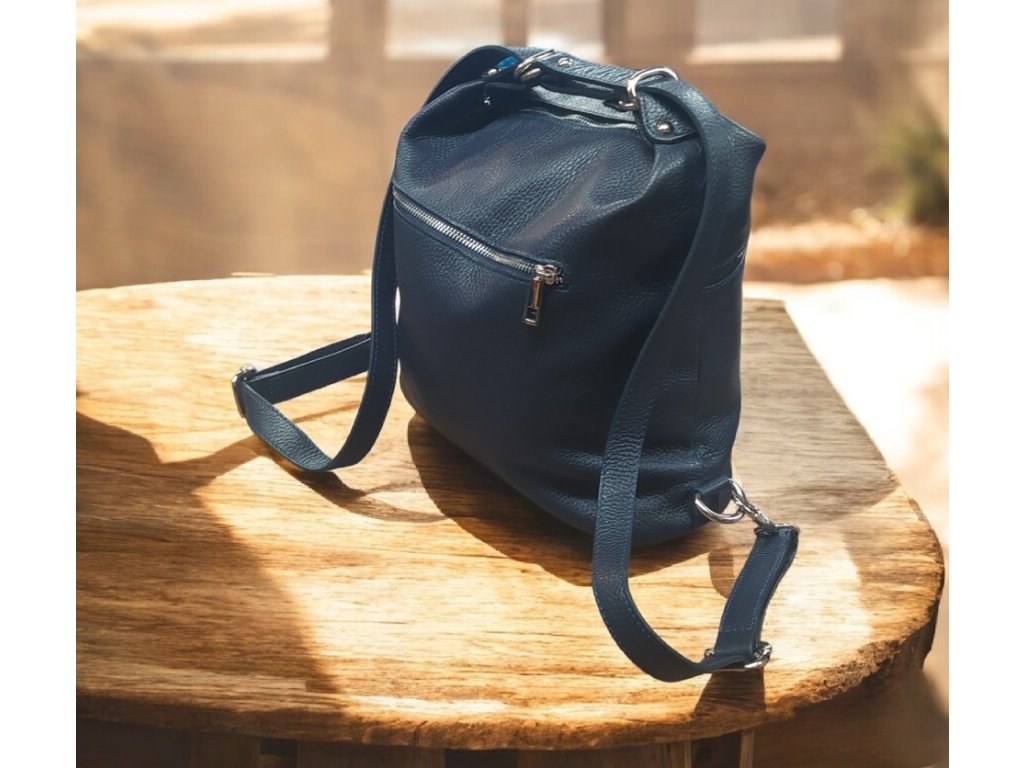 Vera Pelle kožený kabelko batoh tmavě modrý