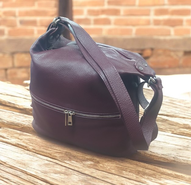 Kožená kabelka a batoh v jednom provedení