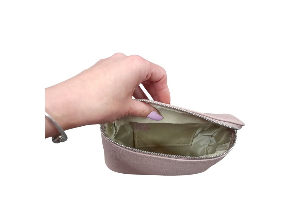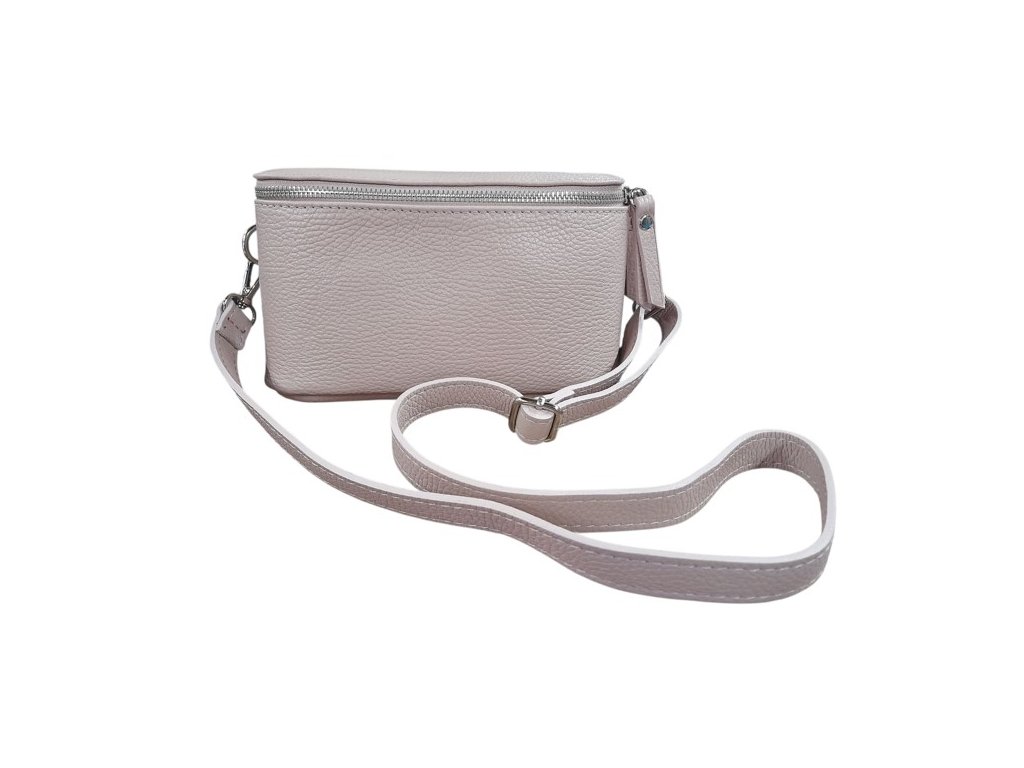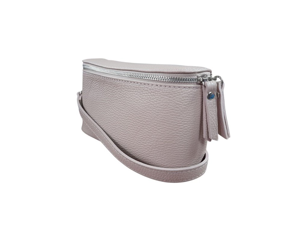 Trendy dámská ledvinka z pravé kůže v pudrovém odstínu